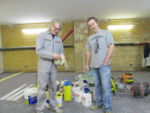 Die Mühen haben sich gelohnt: Da stehen sie, meine Helden, bewaffnet mit Pinsel und Rolle, Schweiß auf der Stirn, umgeben von Abdeckfolie und Farbeimern. (Findet die eine Unwahrheit in diesem Satz! 😊 )